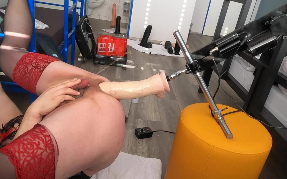 Für zusätzlichen Spaß habe ich eine Fickmaschine mit Mr. Hankeys Toys in allen Größen. Als Gleitmittelersatz dienen Spritzen, Pissen, Spucken oder analer Saft auf den Dildos. Man wird so lange gefickt, bis man kommt. Eine Halterung für den LeWand-Stab-Vibrator ist ebenfalls vorhanden, der dauerhaft am Schwanz, Sack oder Kitzler vibriert (der Womanizer ist auch möglich).